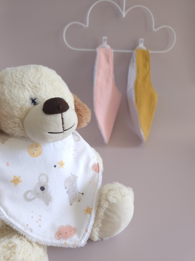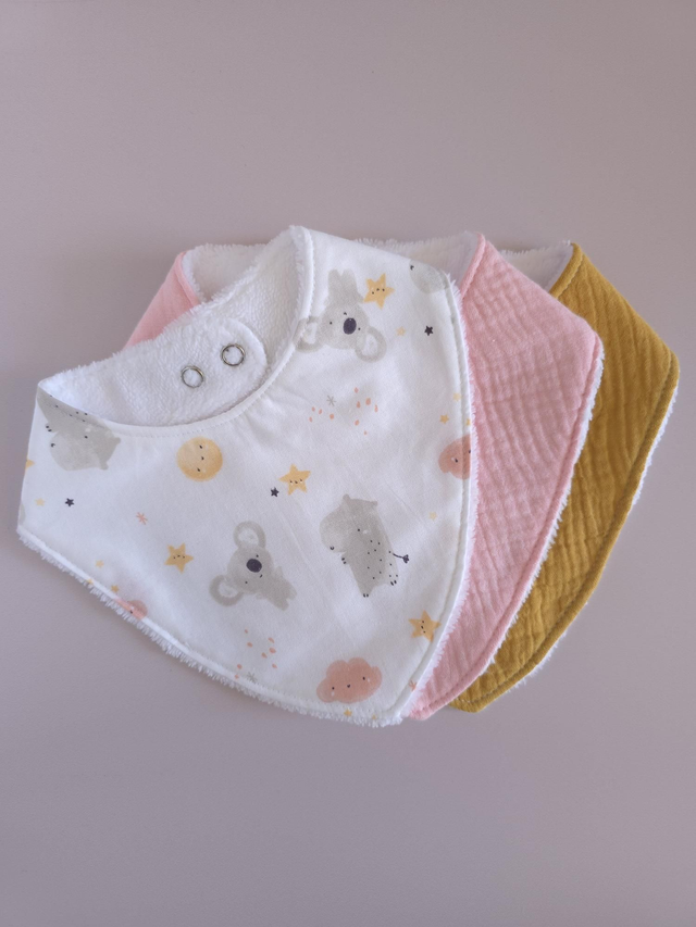 Craquez pour ce bavoir bandana aussi joli qu'utile ! Idéal pour les petites régurgitations ou les périodes de poussées dentaires, il protège efficacement les vêtements de bébé tout en apportant une touche tendance à sa tenue.